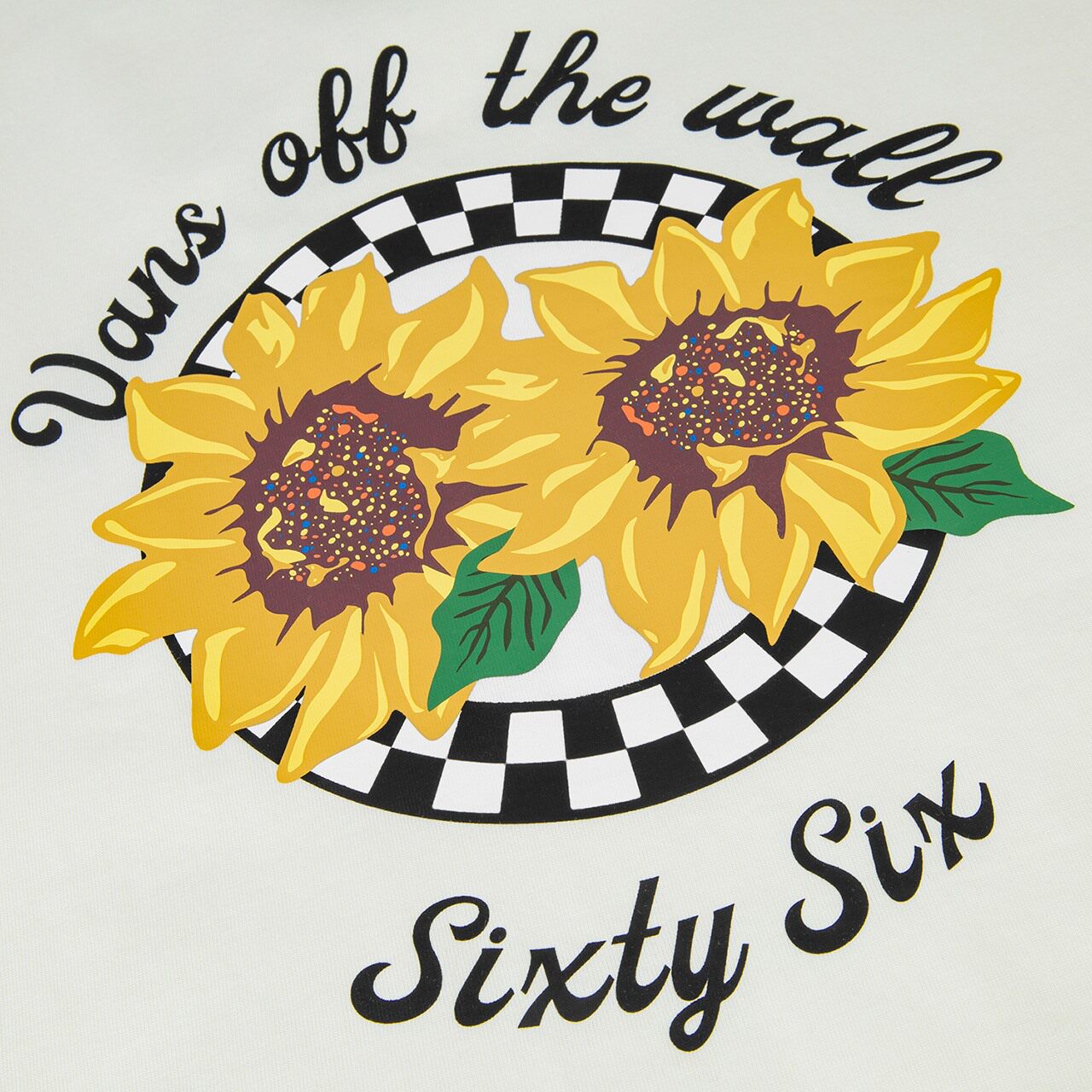 Vans Van Sans official male and female couples short sleeve T-shirt Summer loose colour patterned sunflower rice white
