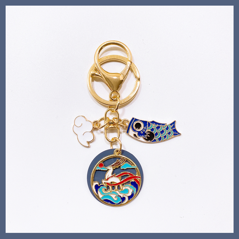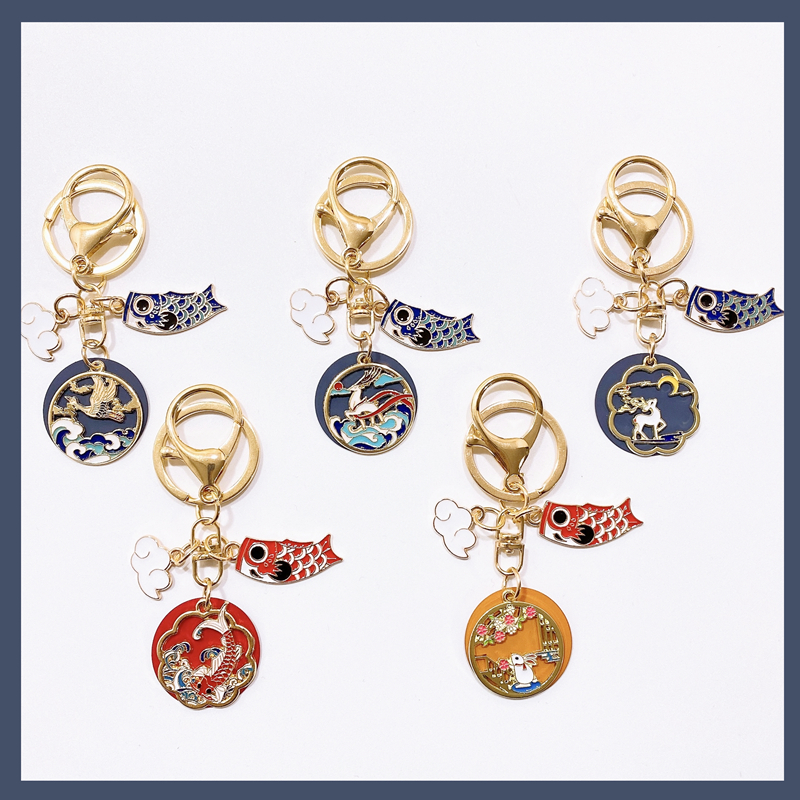 National tide ancient style creative Japanese good luck koi Hongyun Xian crane Xiangyun keychain alloy bag pendant accessories women