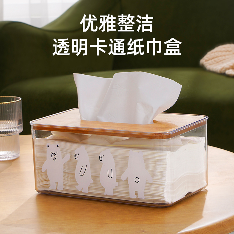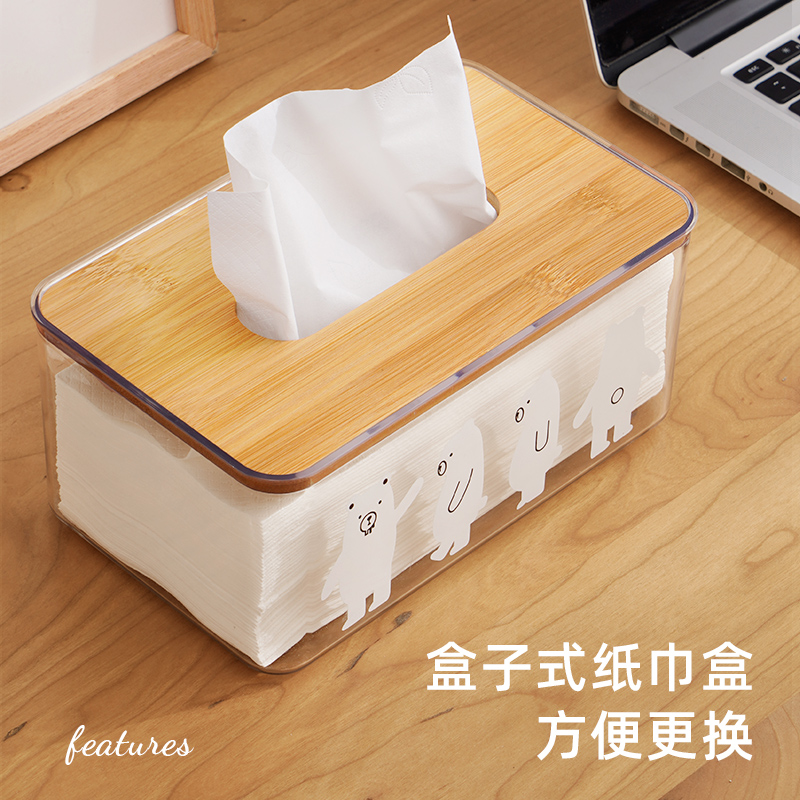 Paper Towel Box Living Room Home Bedroom Creative Cartoon Transparent Wooden Cramps Paper Box Napkins Box minimalist containing box-Taobao