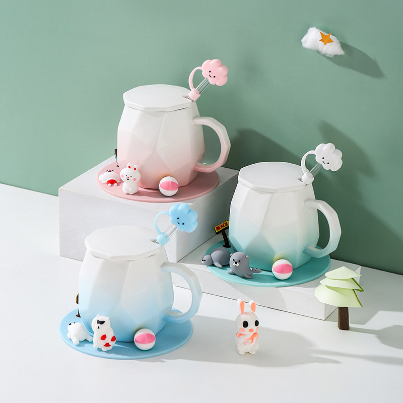 Pink Gradient Bunny Cloud (straw straw plug lid) Green Gradient Sea Lion Cloud (straw straw plug lid) Blue Gradient Snow Bear Cloud (straw straw plug cap)