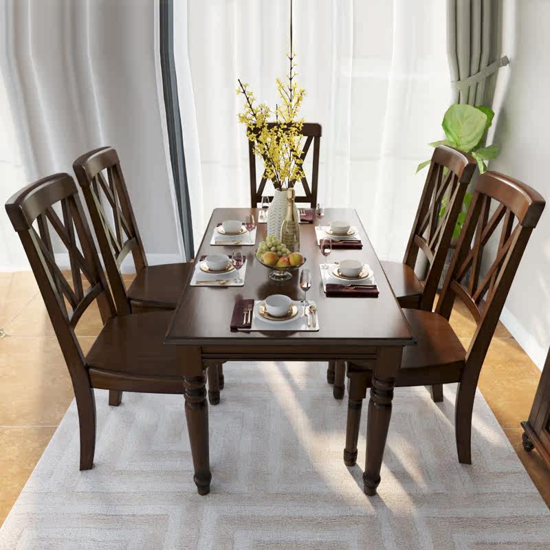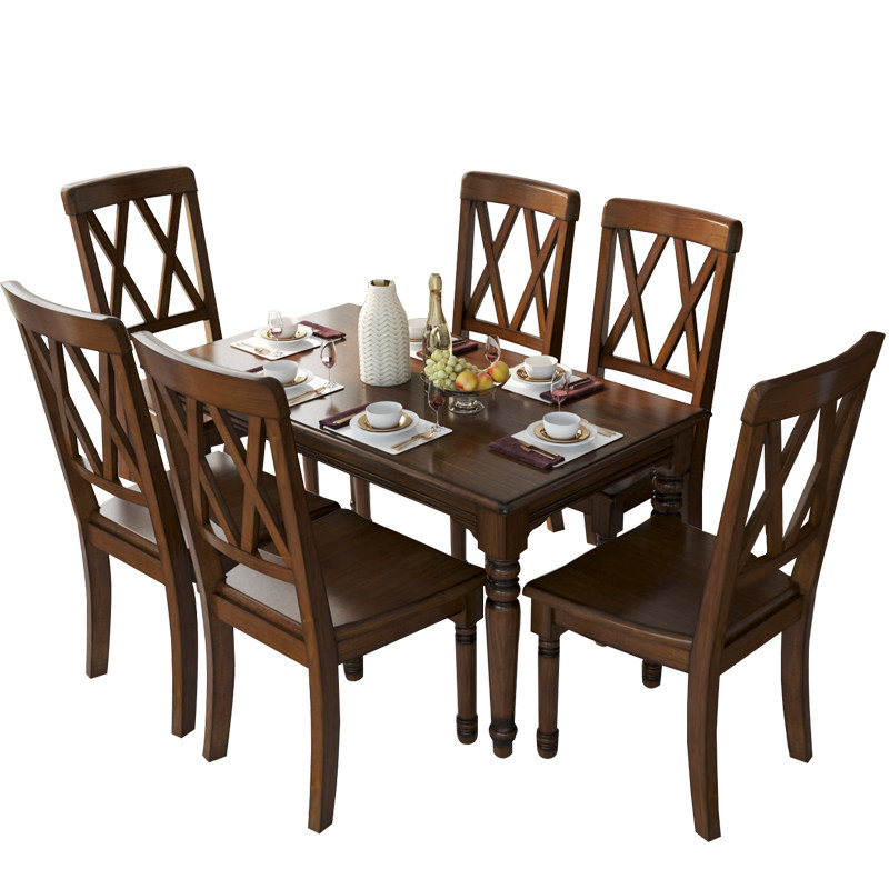 Pure solid wood dining table simple American country household dining table size apartment rectangular square table dining table and chair combination