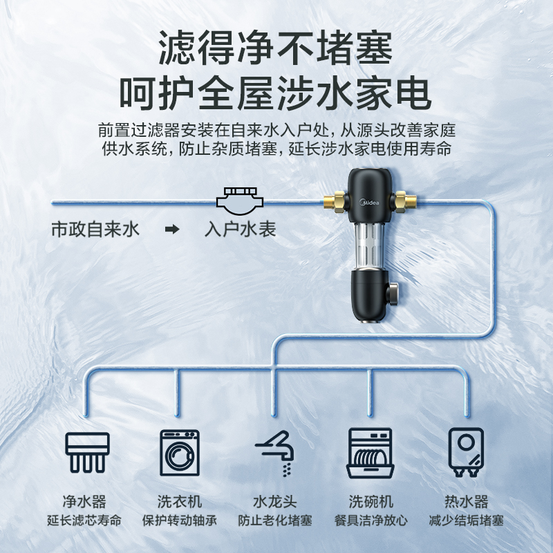 (Upgrade 5T large flux) Midea pre-filter whole house water purifier household tap water filter-48