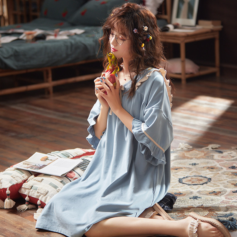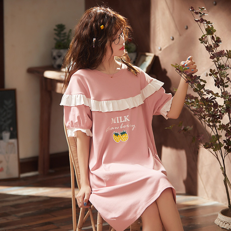 2021 new night dress women's pure cotton home clothes sweet princess wind net red burst thin short-sleeved pajamas summer