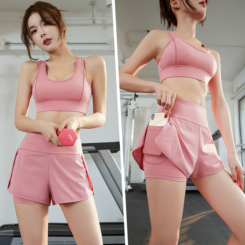 (Pink shorts three-piece set)Shorts bra Short sleeve