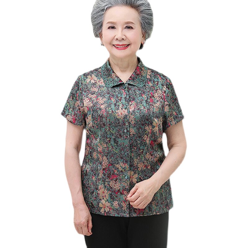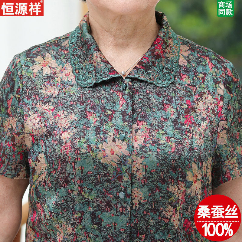 Middle Aged Seniors Summer Dress Female Mother Real Silk Clothes Foreign Pie Mulberry Silk Shirt Short Sleeve Wife Grandma Dress Suit