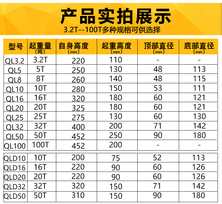 Baoshan Hugong Screw Jack Gear Hand Mechanical Jack QLD10 Tons 5T32t50 Tons 100T20