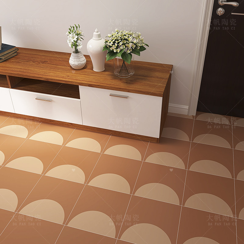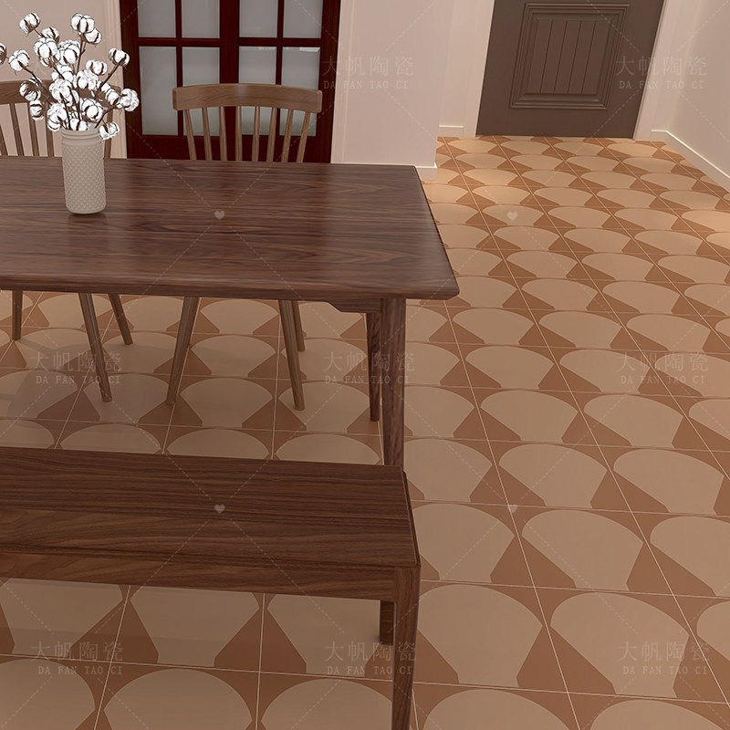Retro terroir yellow small flower brick fan-shaped pattern homestay balcony matte floor tile porch toilet background wall tile
