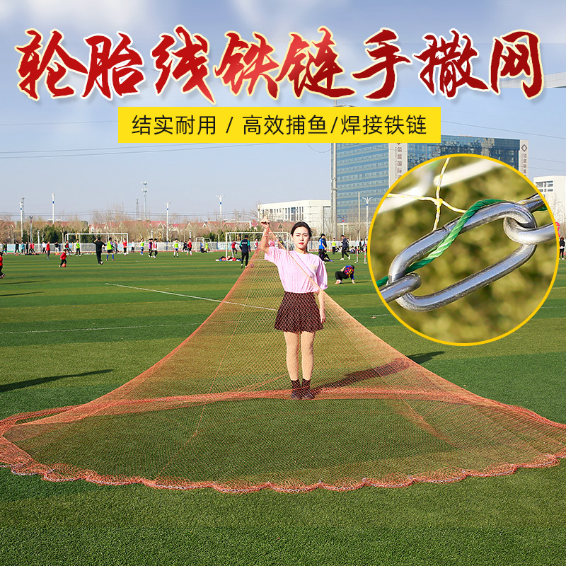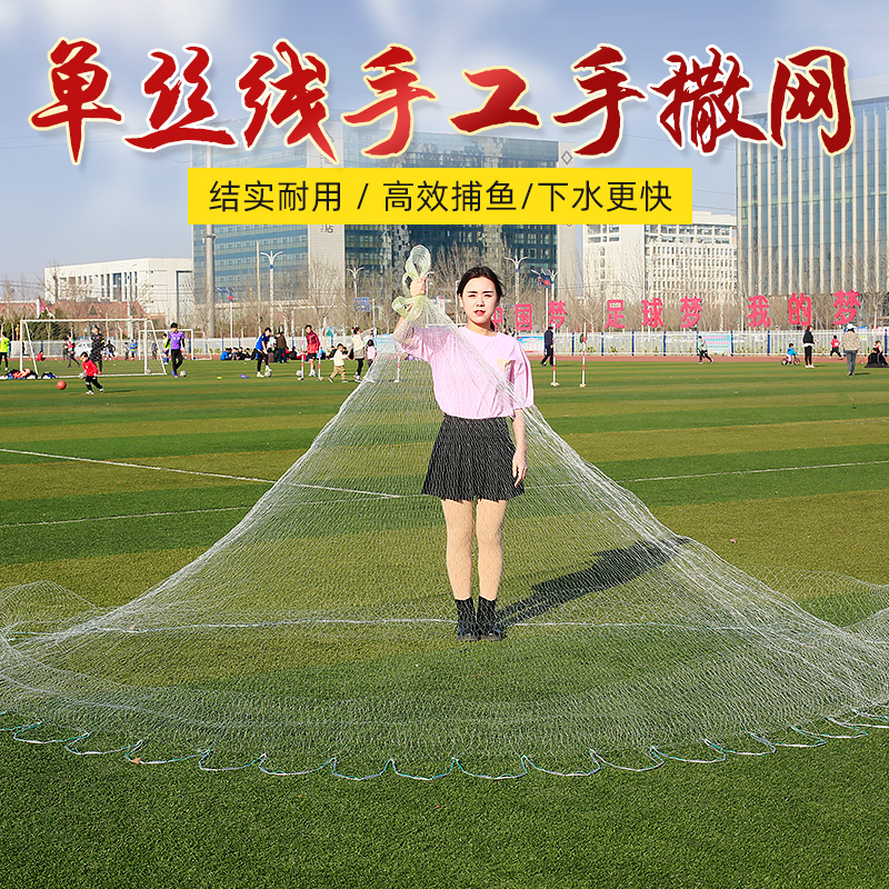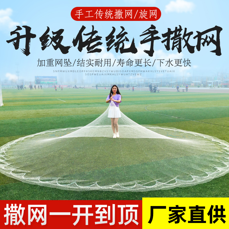 Old-fashioned casting net pure handmade tire line hand throwing net traditional nylon fishing net easy to throw net thick fishing line automatic fishing net