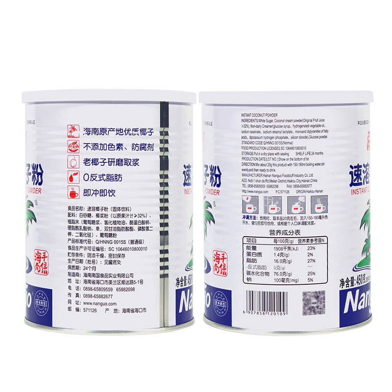 Hainan specialty Nanguo instant coconut powder 450g canned breakfast afternoon tea brewing drink factory direct sale