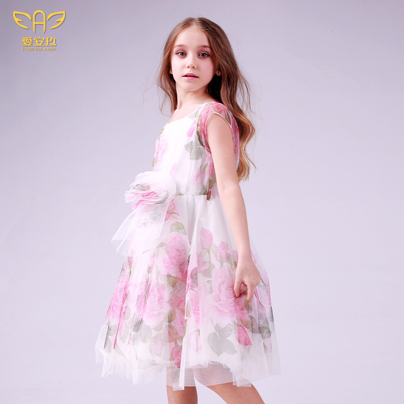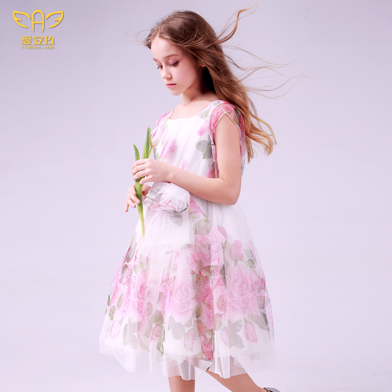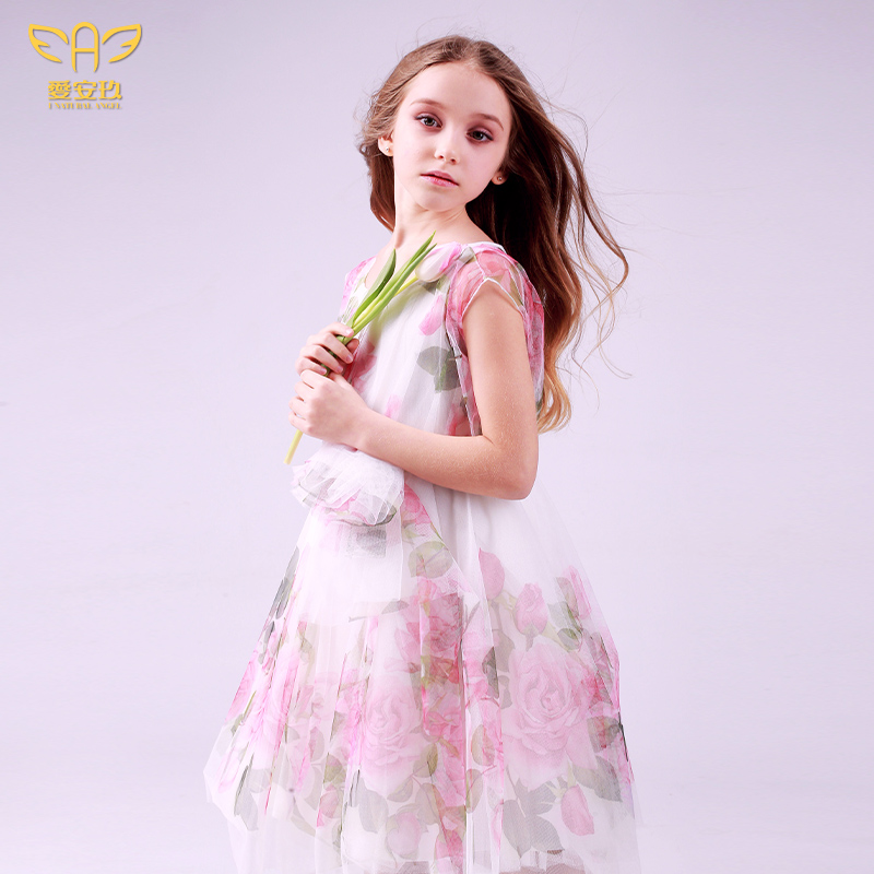 Aianjiu spring and summer little girl princess dress foreign style puffy children's dress small floral girl gauze dress performance costume
