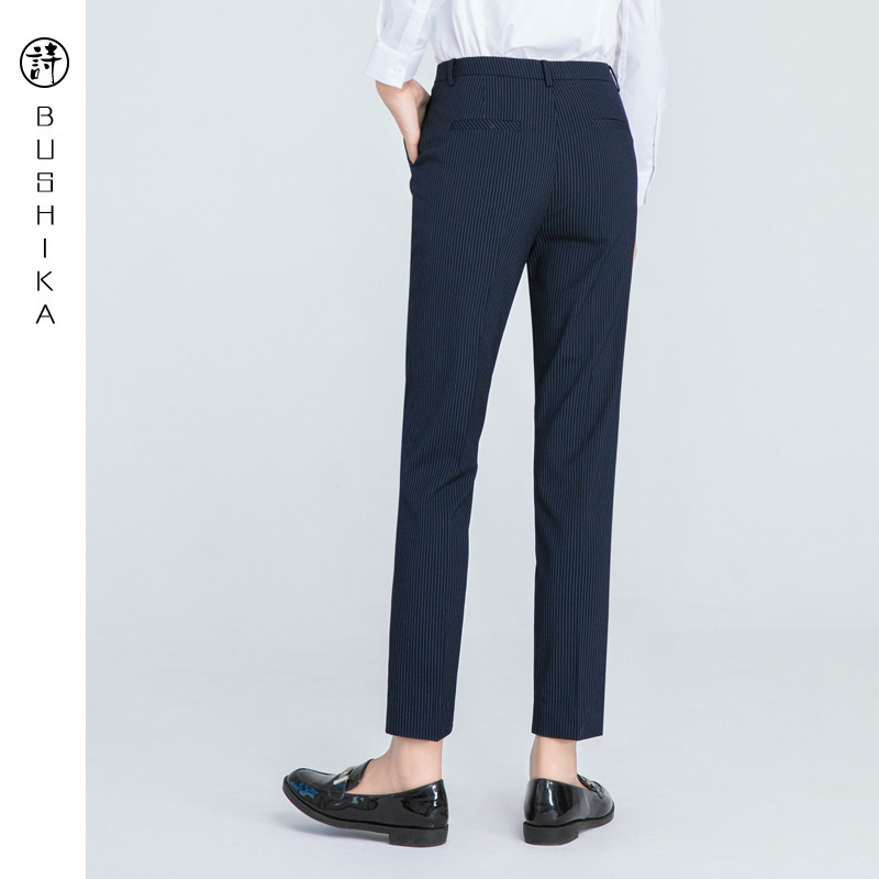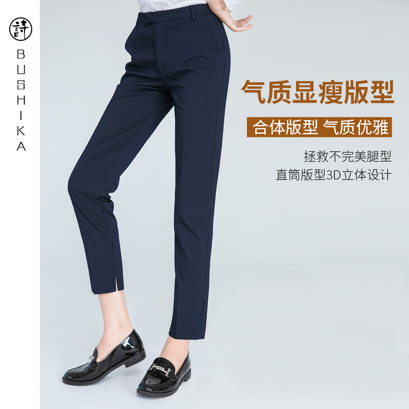 Hide Cyan Western Dress Pants Female Stripe Open Fork Spring Summer High Waist Commute Little Sub Professional Elastic Work Western Pants Straight Cylinder