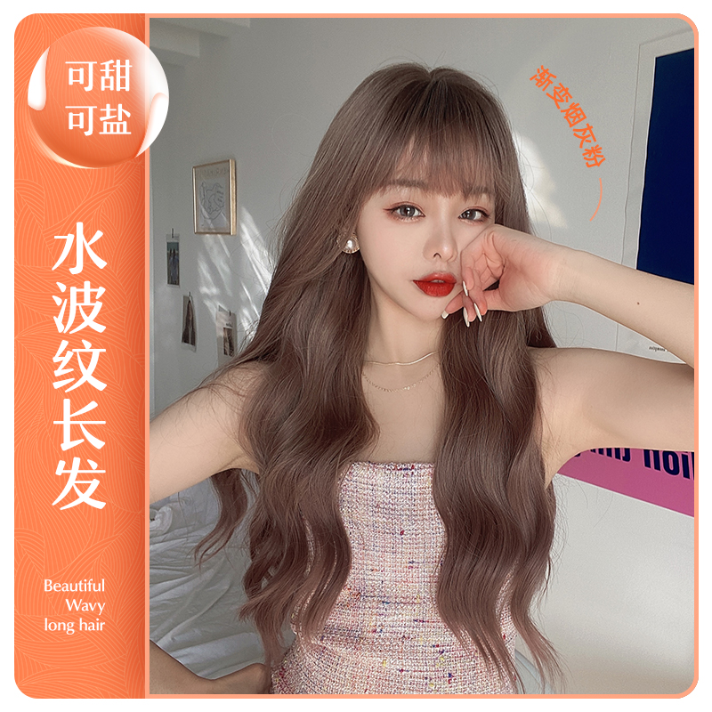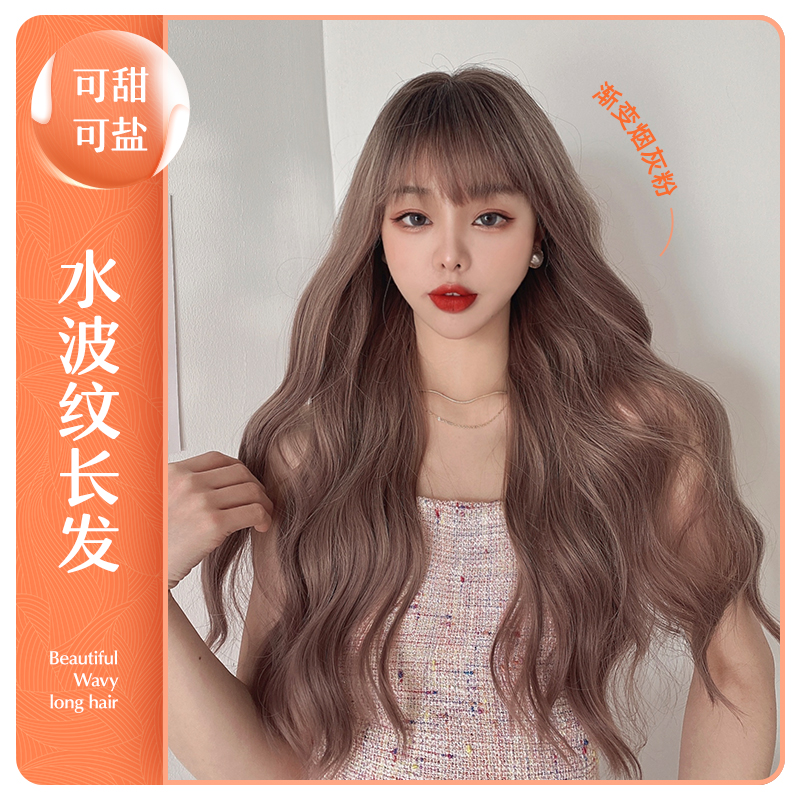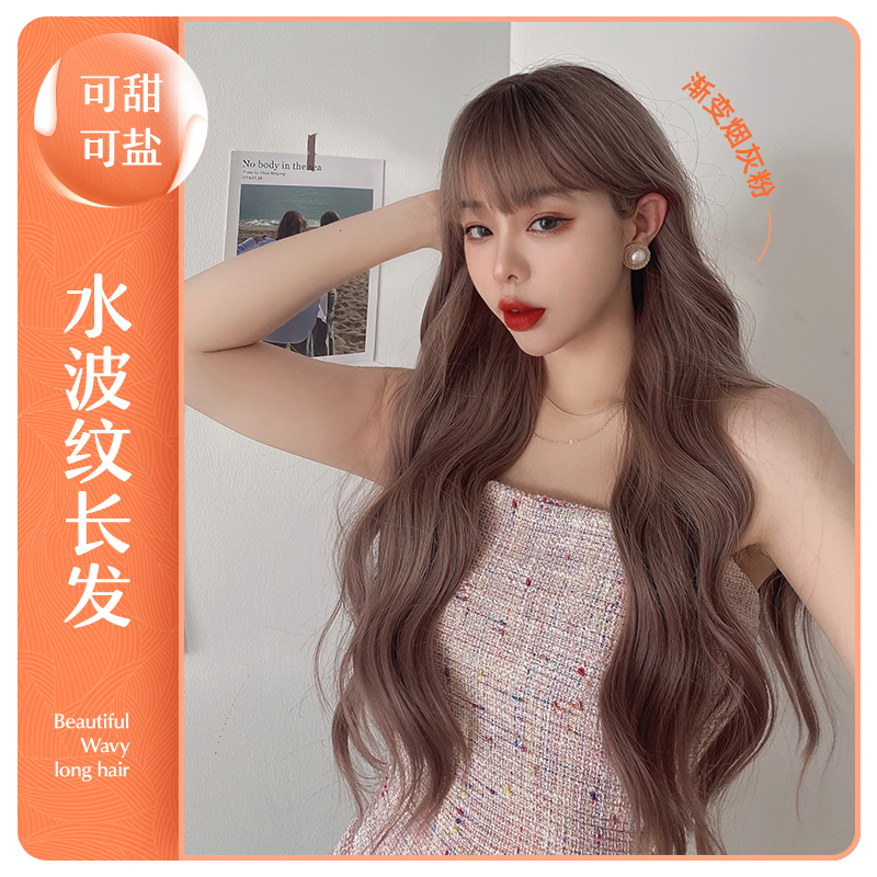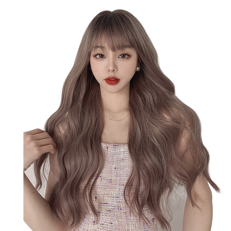 Wig woman long hair natural lolita net red powder brown tapered thin vines long curly hair large wave full headgear