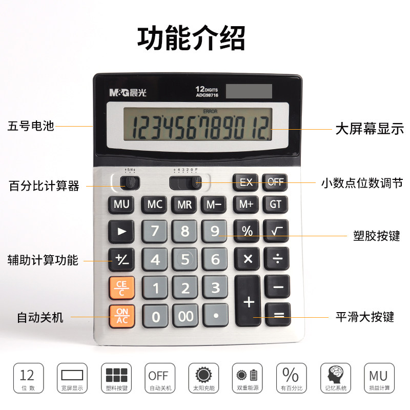 Morning Light Calculator Office with large screen large button calculator Solar voice Finance Accounting Private computer Live-action Pronunciation Big Multifunction Office Business Type Calculator
