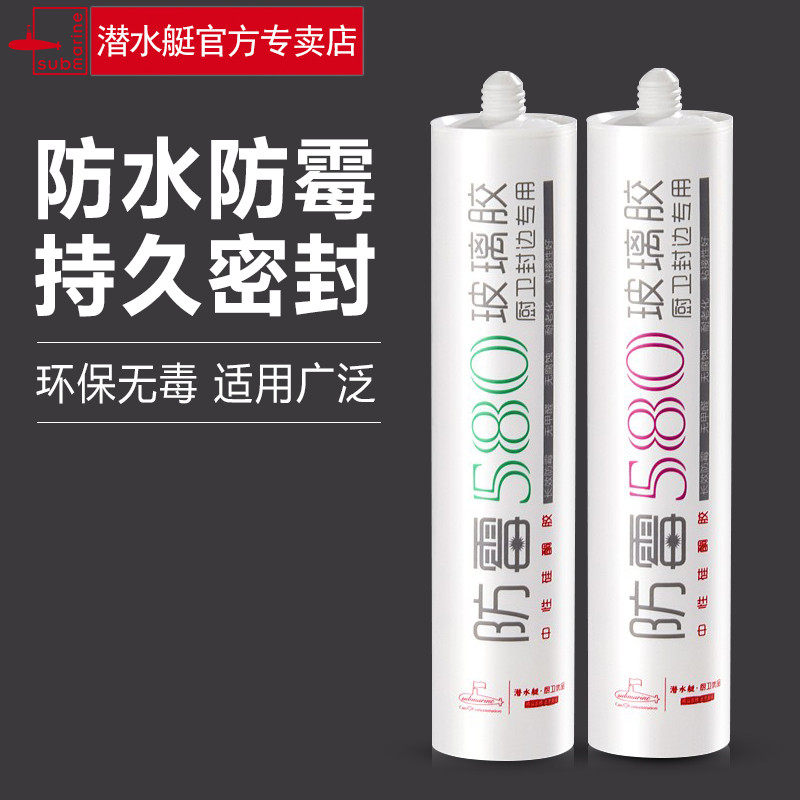 Submarine 580 glass glue Waterproof mildew kitchen toilet edge sealing glue Household neutral silicone transparent sealant
