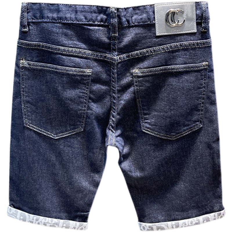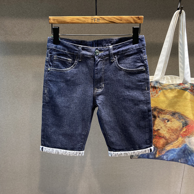 Pants side printed 100 lap deep blue not fading denim shorts male 50% pants trendy 50% pants male summer thin
