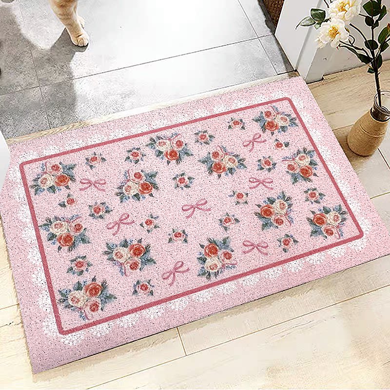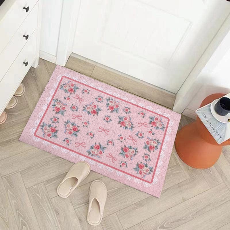 Adorable rose butterfly knot silk ring doormat Nordic ins Xuan locked into the doormat Mat Dust Mat