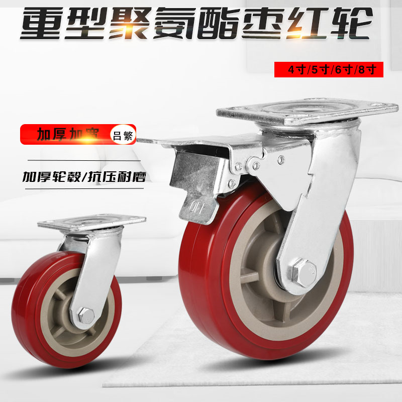 6-inch heavy-duty date red polyurethane universal wheel 4-inch flat trolley 8-inch accessories industrial wheel 5-inch universal caster