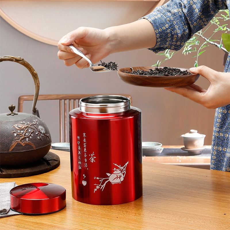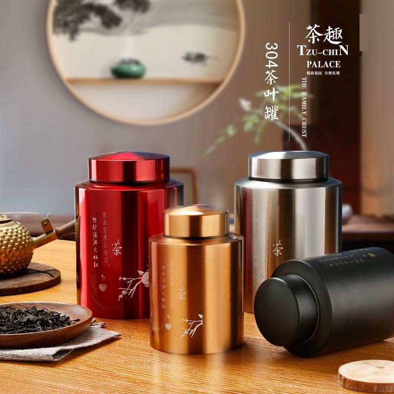 Large-capacity stainless steel tea pot metal tea warehouse sealed box new tea gift box boutique storage tea pot portable