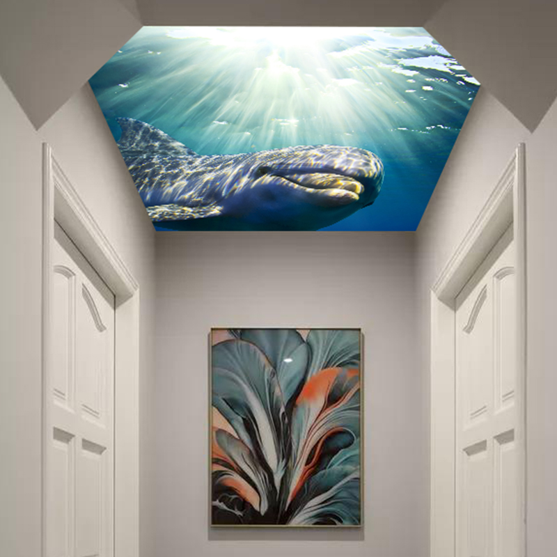 Seafloor Art Glass overhanging ceiling Ceiling Genguan Corridor Aisle Color Printed Lamp Board Decorated Sky Acrylic Overhanging Ceiling Light Transmission Board