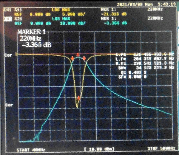 220MHz dedicated frequency band LC bandpass filter 1dB bandwidth 20MHz SMA connector