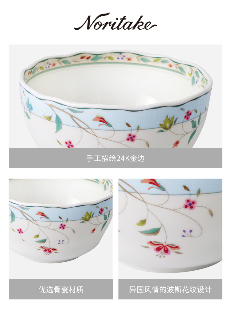 Noritake Noritake HANASARASA Bone China Rice Pair Bowl Cute Girly Heart Set Household Tableware