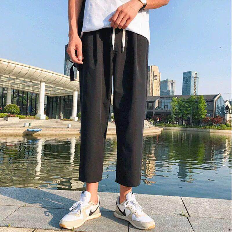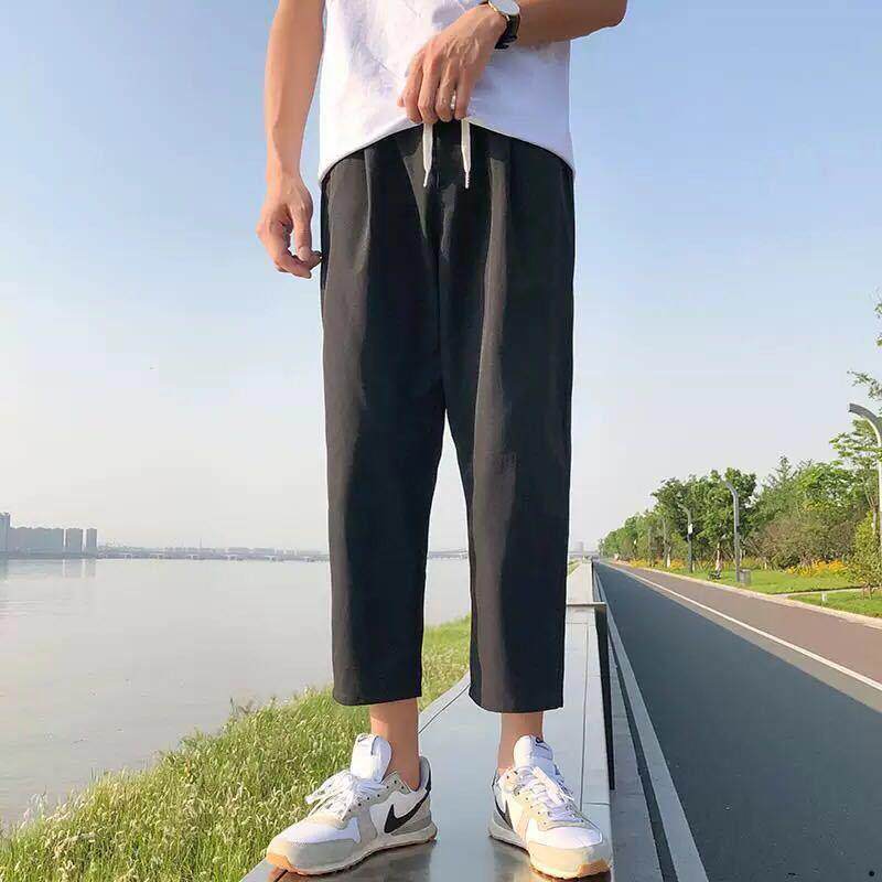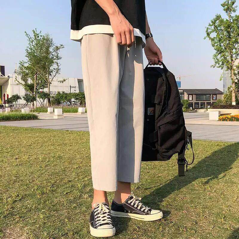 Port Wind Ins Slim PURE COLOR 90% PANTS MALE TIDE CARD KOREAN VERSION CASUAL PANTS SUMMER LOOSE STRAIGHT DRUM STUDENT PANTS MAN