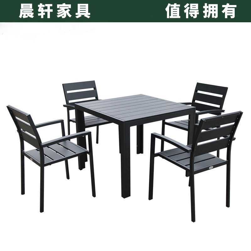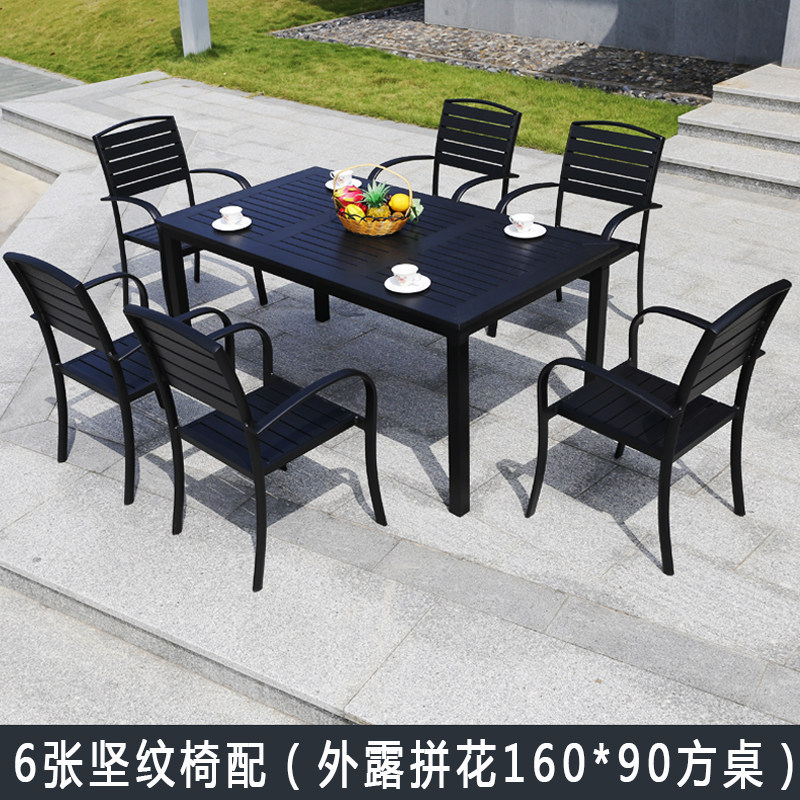 Iron art plastic wood simple leisure table and chair furniture combination outdoor garden terrace anti-corrosion wood long table three-five-piece set