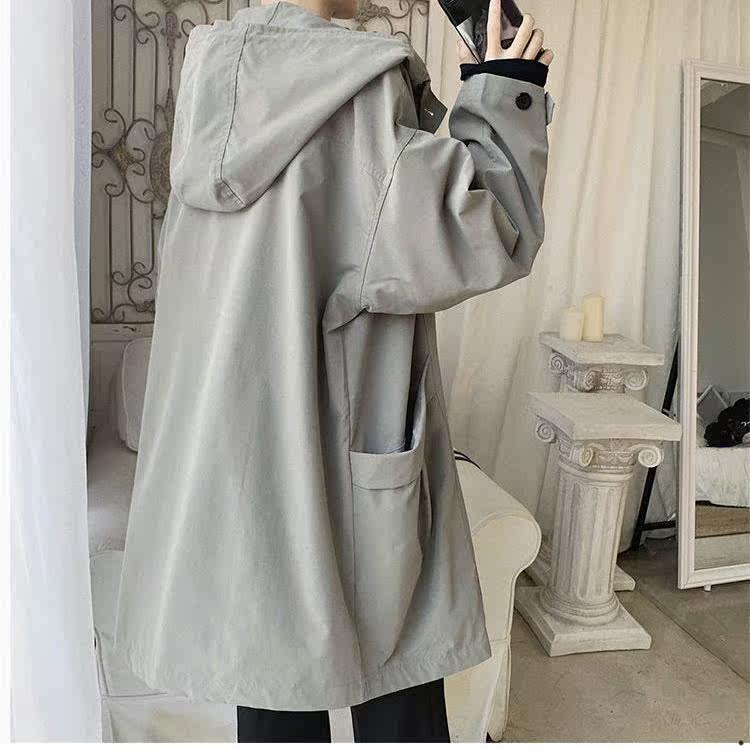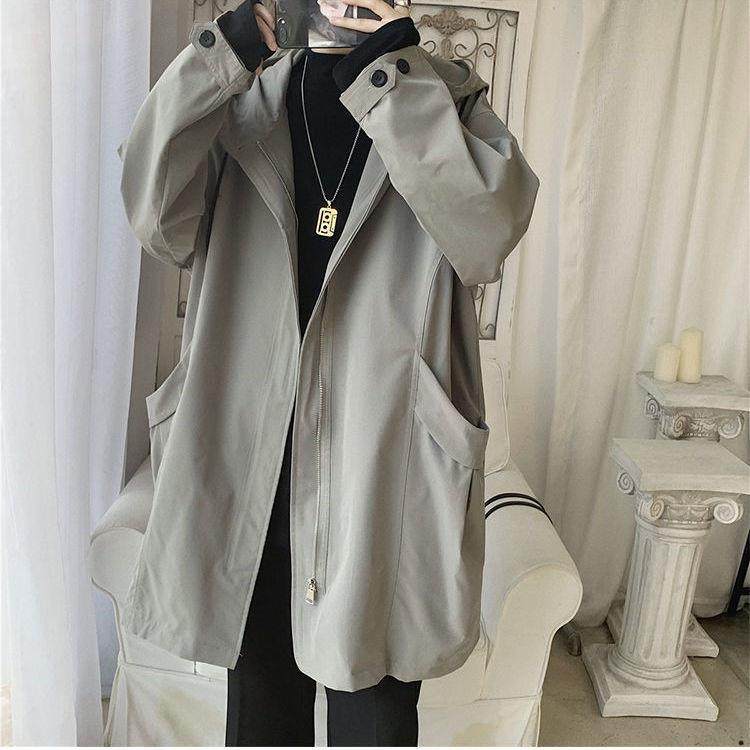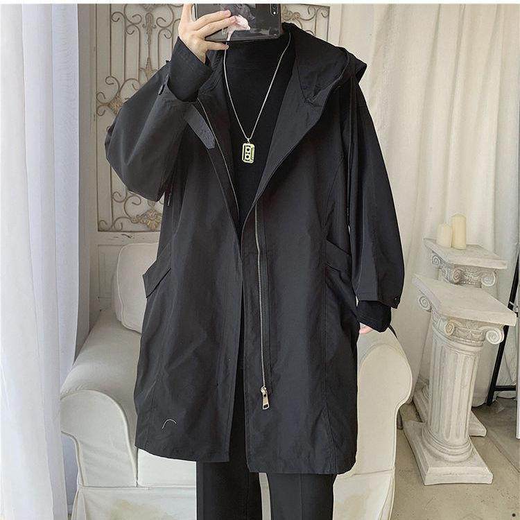 Work coat men's 2021 spring spring new Hong Kong style ruffian handsome windbreaker jacket loose tide brand long hooded jacket