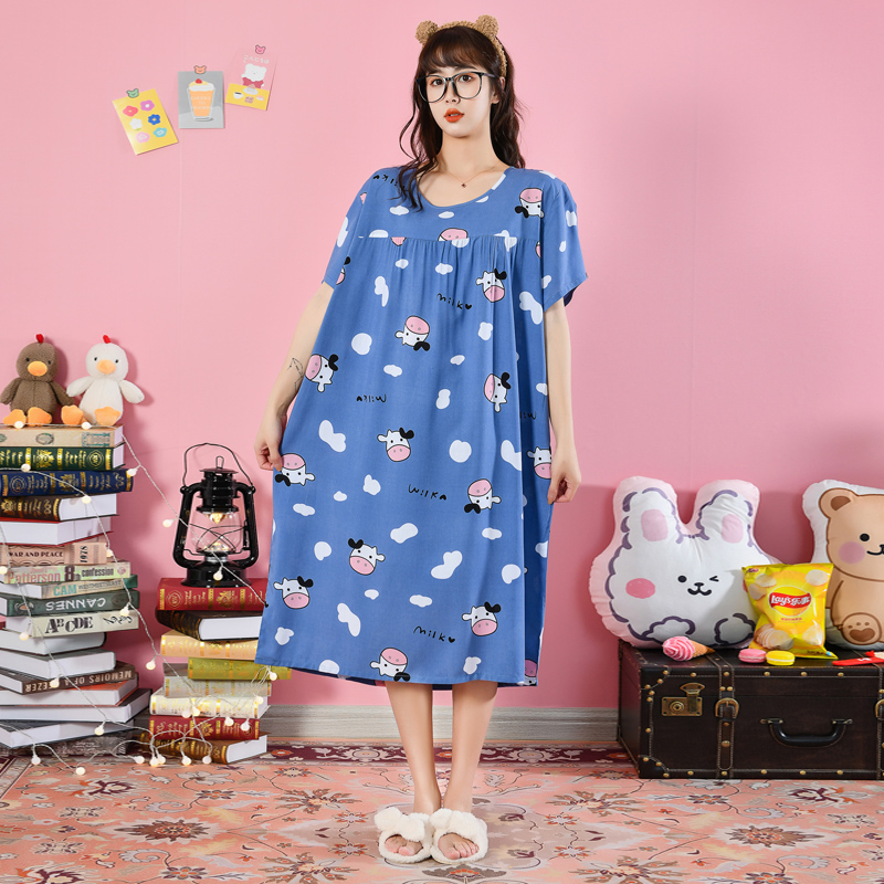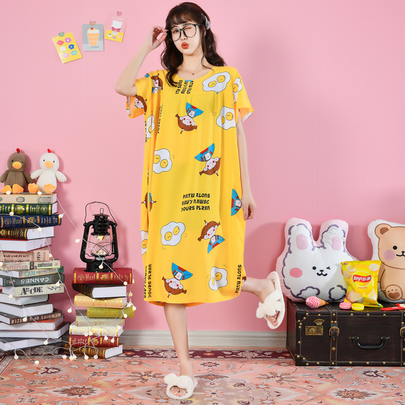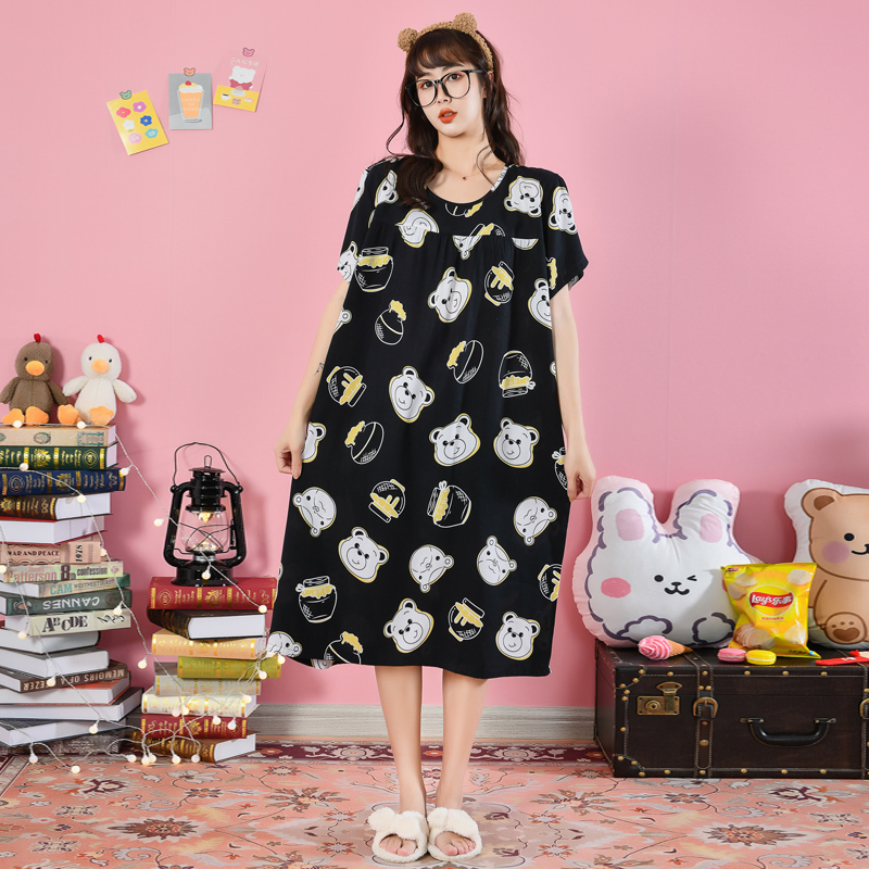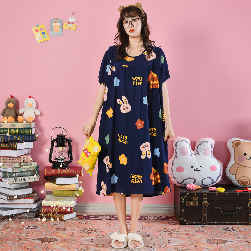 Korean version of extended cotton dress cartoon cute ladies short sleeve plus size pajamas summer artificial cotton home clothing