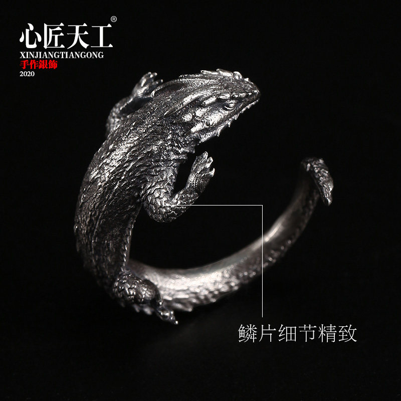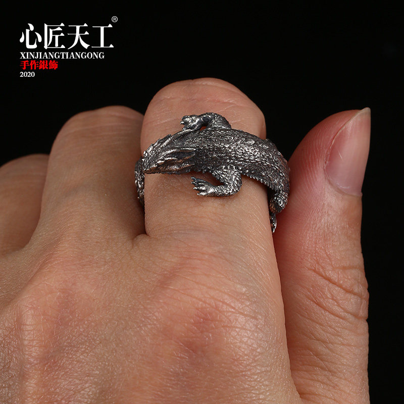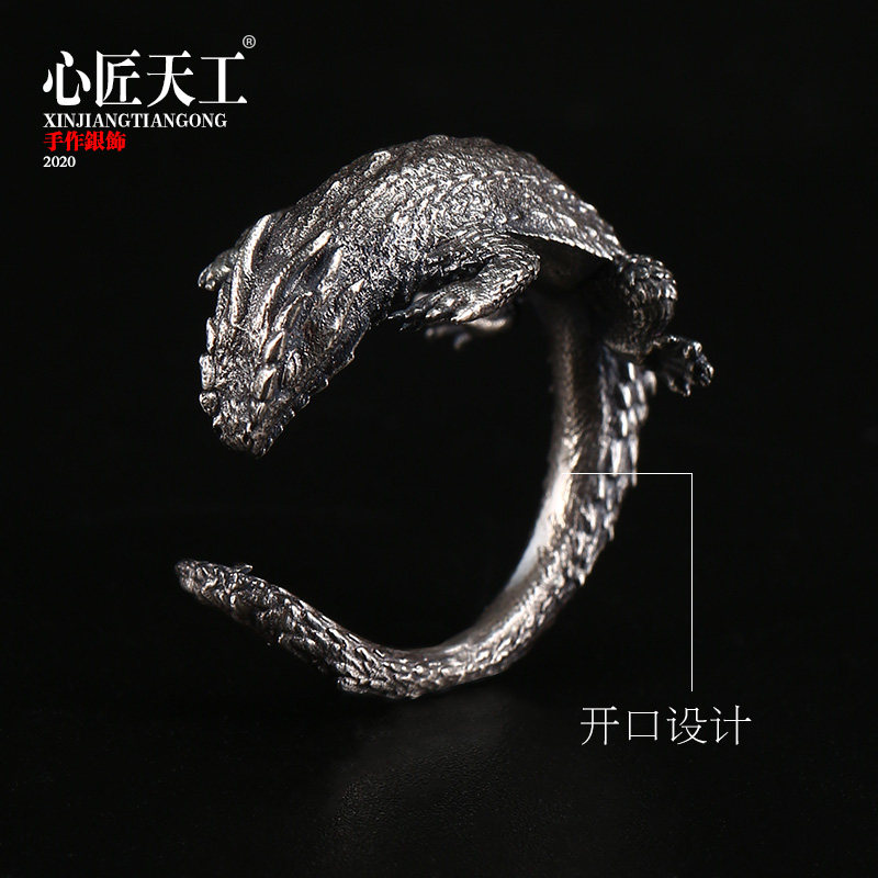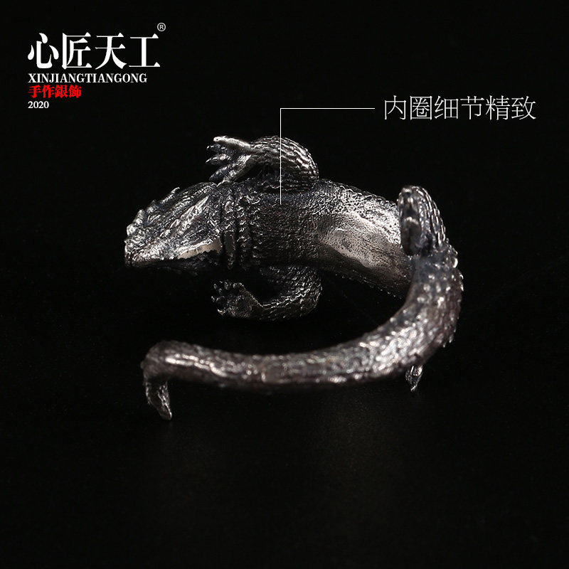 925 pure silver ring female lukewarm wind lizard ornament male opening ring creative index finger ring handmade digy custom gift