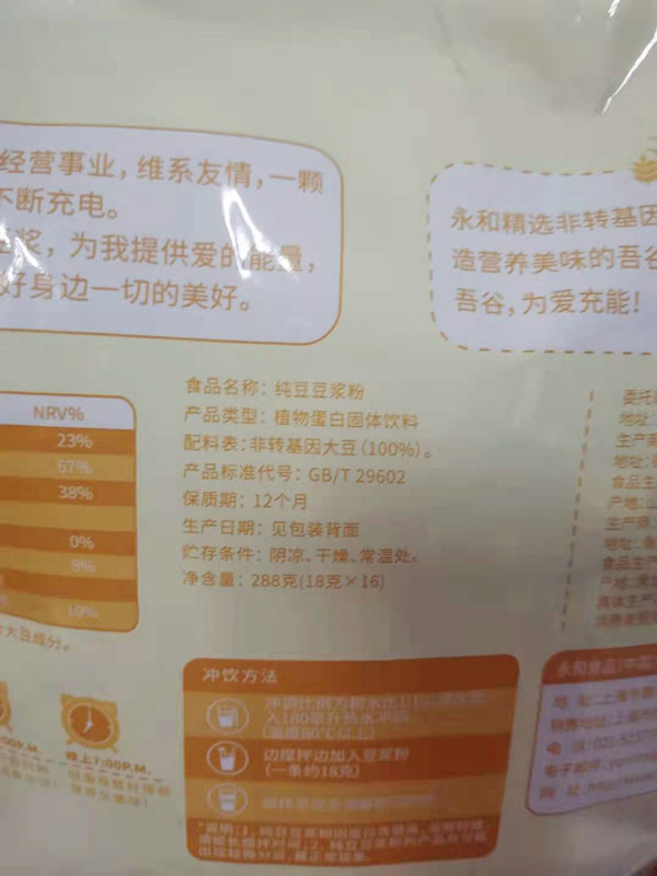 Yonghe pure soy milk without added sugar 288g instant nutritious brewed beverage ready-to-eat breakfast vegetable protein soy milk powder