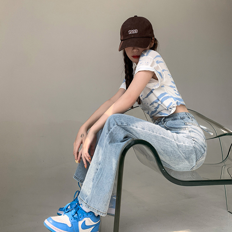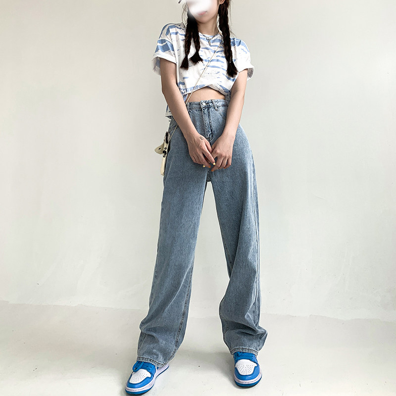 Hot girls straight jeans female fat sister plus size women's autumn clothing new style 2022 loose high waist wide legs slim trendy
