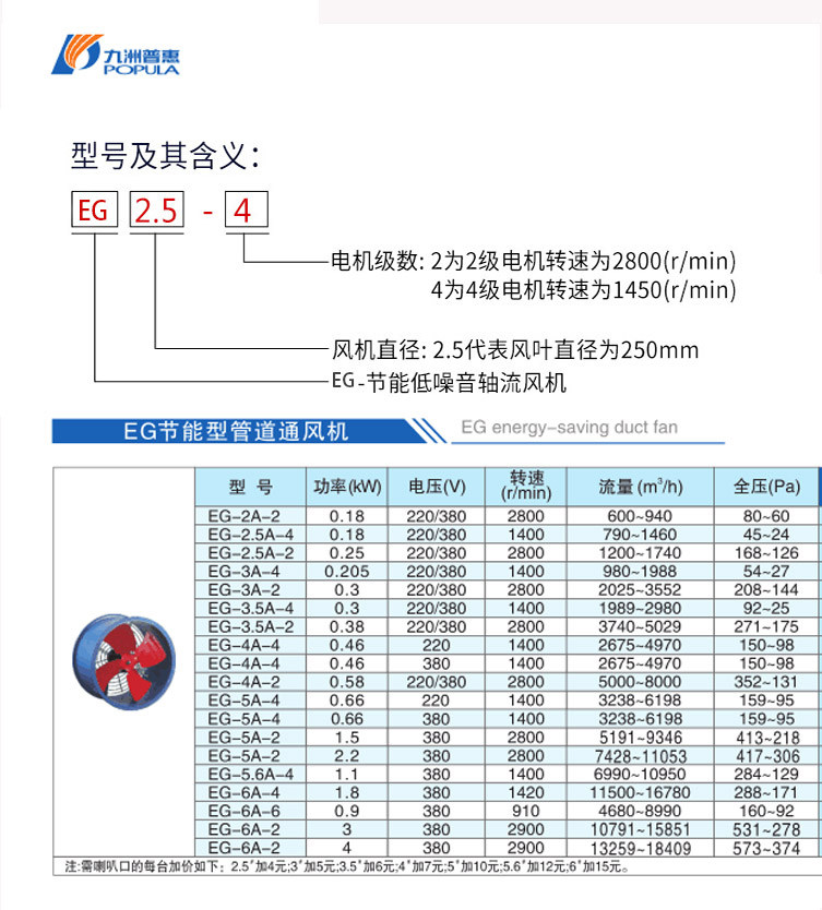 Jiuzhou post-type pipe axial flow fan exhaust fan kitchen exhaust oil smoke exhaust high speed powerful exhaust fan industry