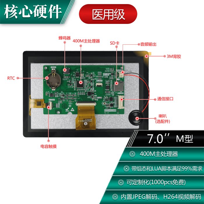 7 inch 1024*600 serial screen touch screen medical grade capacitive screen Guangzhou color LCD screen