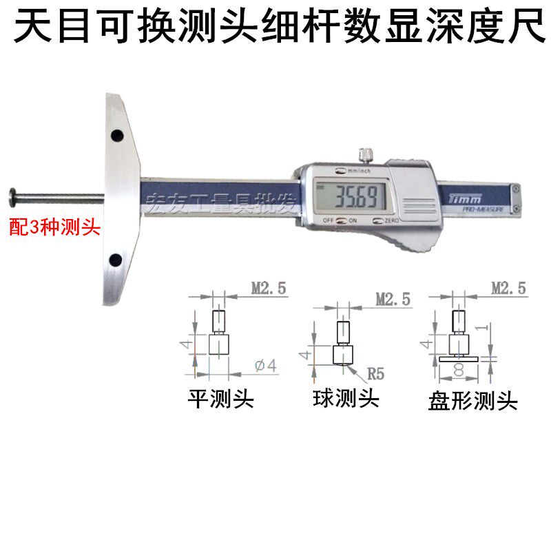 Guilin Tianmu Exchangeable Measuring Head Thin Rod Number of Depth Ruler Head Pan Head Disc Head Deep Hole Round Rod Electronic Depth Ruler