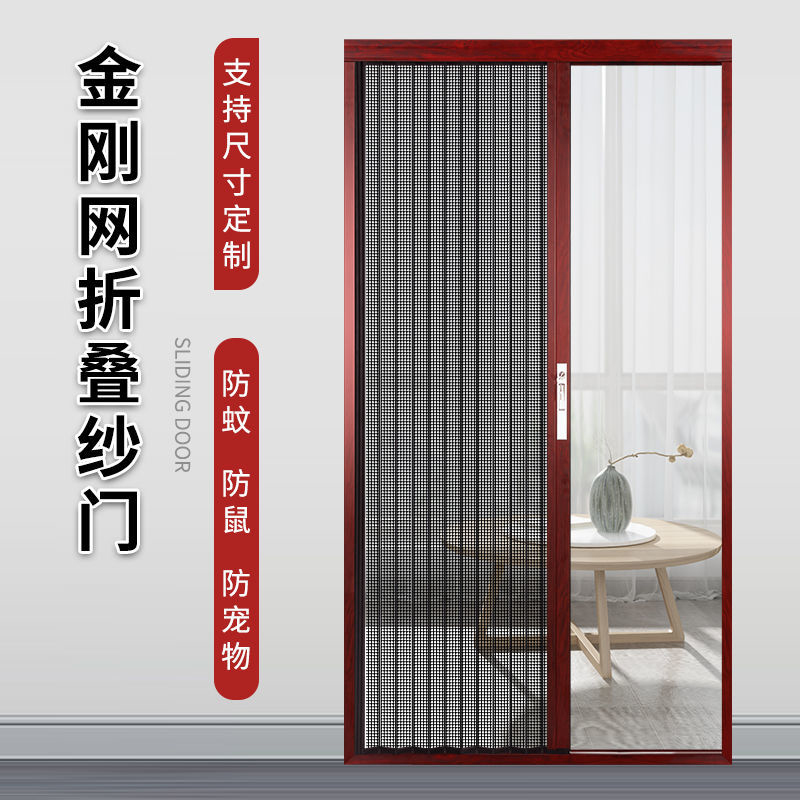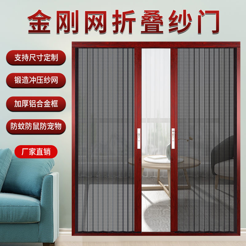 Chengdu Full Aluminum Folding Diamond Mesh Theft Prevention Anti-Cat Rat-Proof Door Invisible Folding Anti-mosquito Screen Door Push-pull Style