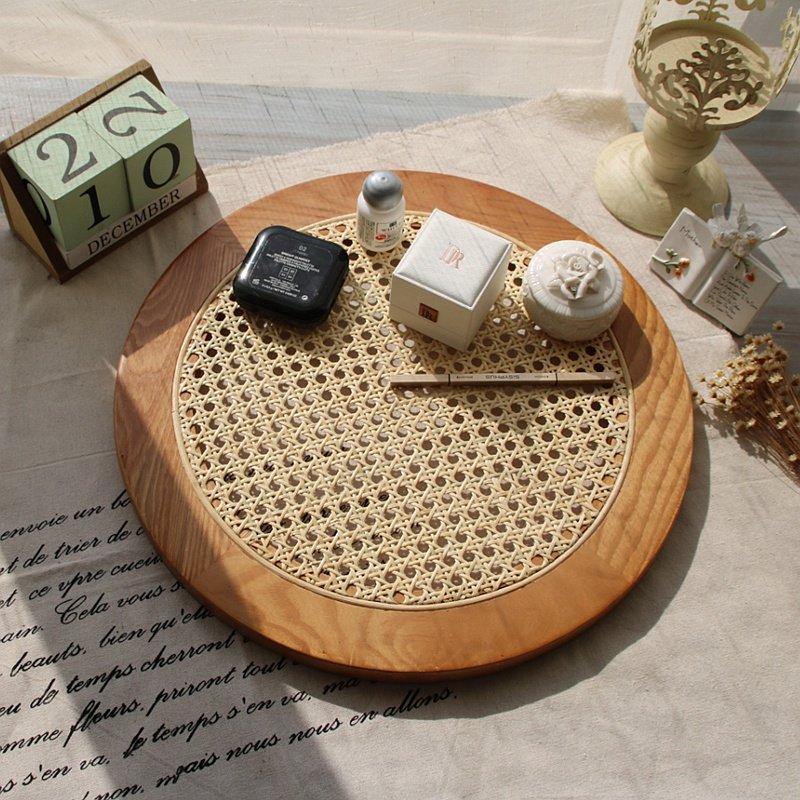 Vine-knitted solid wood desktop tea table Cosmetic Jewelry Containing the Nordic Retro Decorative Containing box Photographed Props