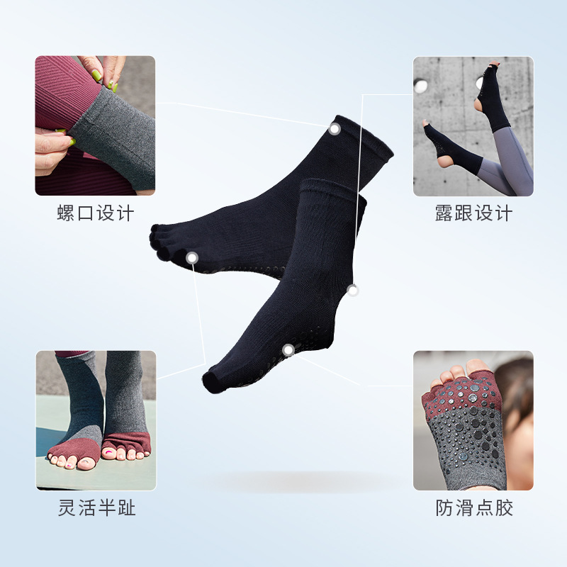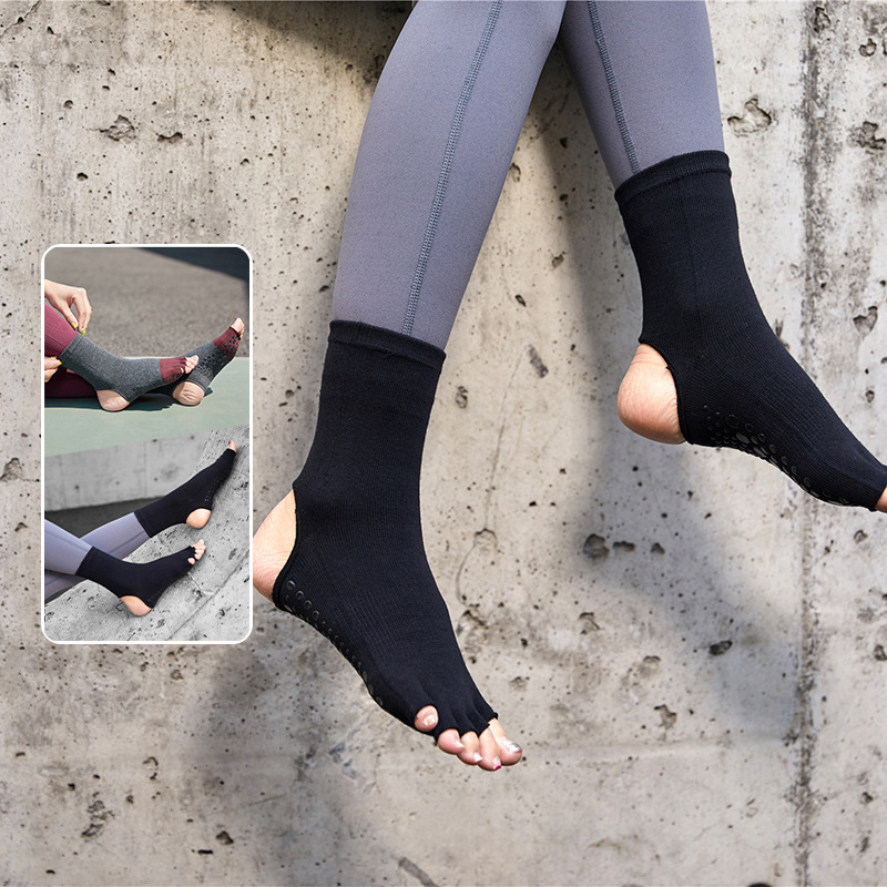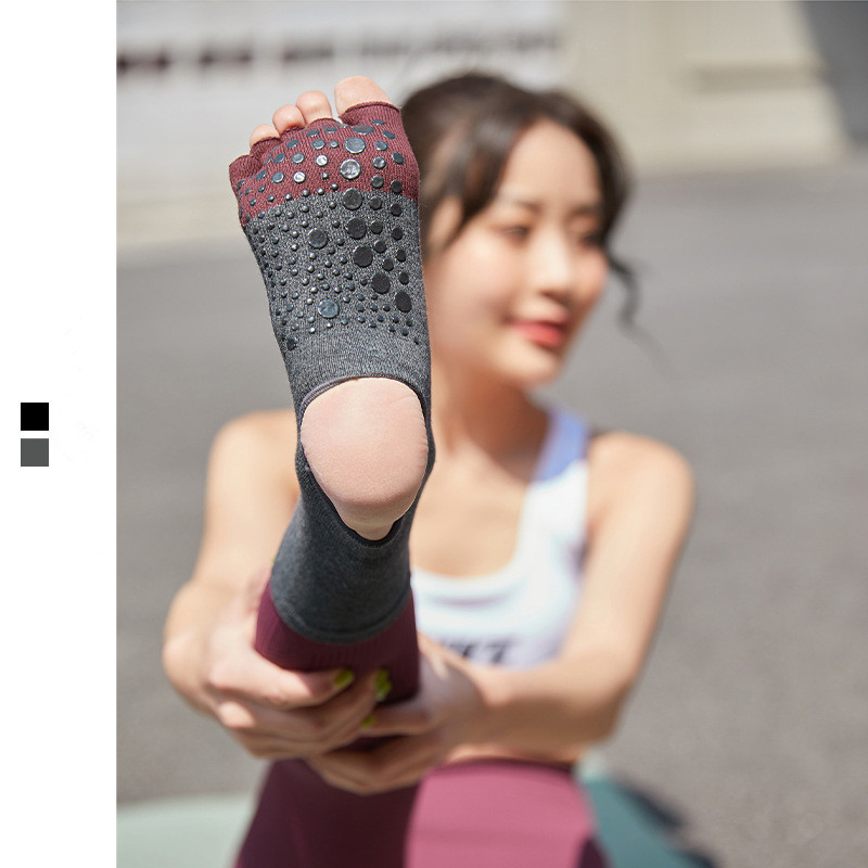 Professional Non-slip Yoga Socks Mid-Toe Spring Autumn Sports Fitness Prati Cotton Socks Floor Long Barrel Socks Woman