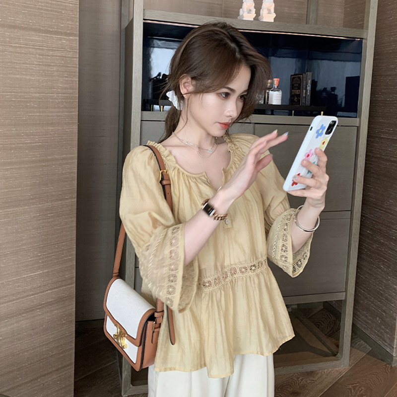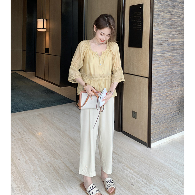 Salt and sweet summer 2023 new shirt network red - fried street wide leg pants professional air field two pieces of early spring female