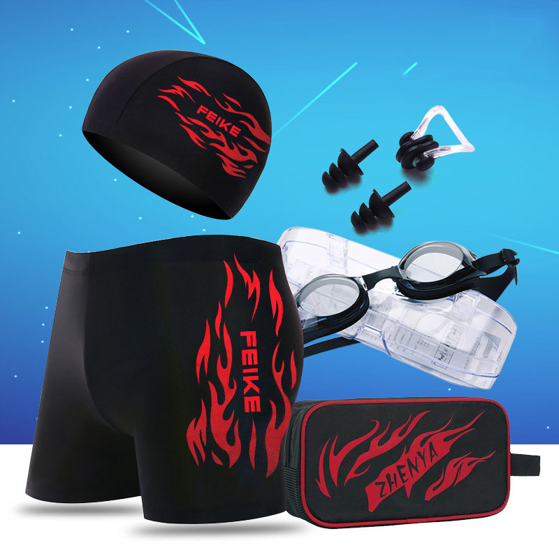 Men's Swimsuit Pants Bubble Spa 4 Corner Pants Comfort Large Size Adult Speed Dry Flame Swimming Trunks Swimsuit Swimming Cap Swimming Suit