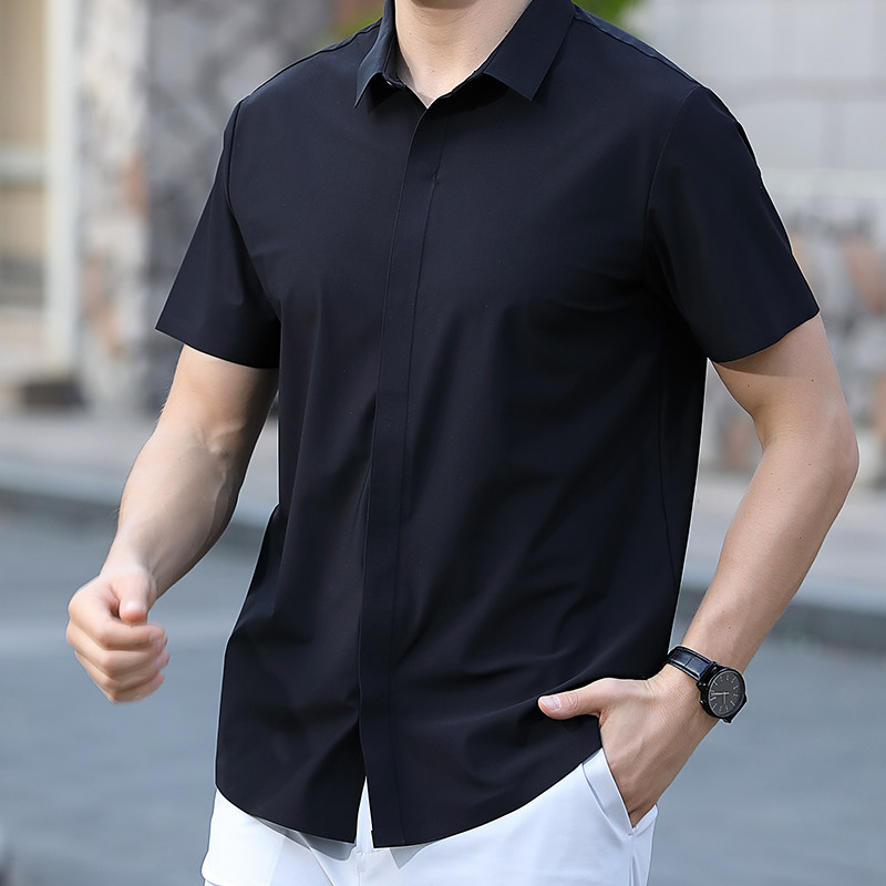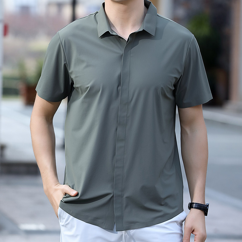 2021 new summer slim fit ice mitt dress middle-aged to work shirt male short sleeve casual inch shirt business shirt man