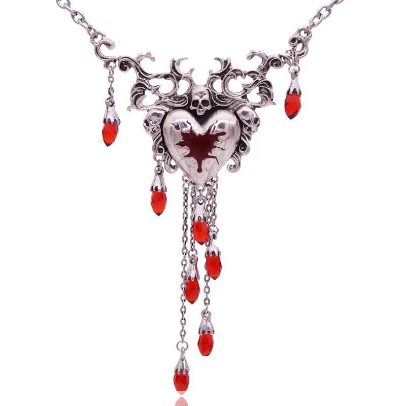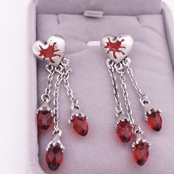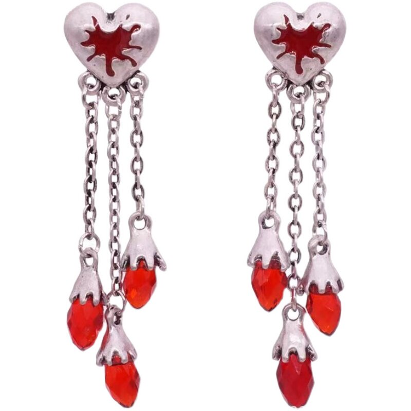 goth subculture punk dark necklace pendant ear pin y2k exaggerated red goth halloween broken heart