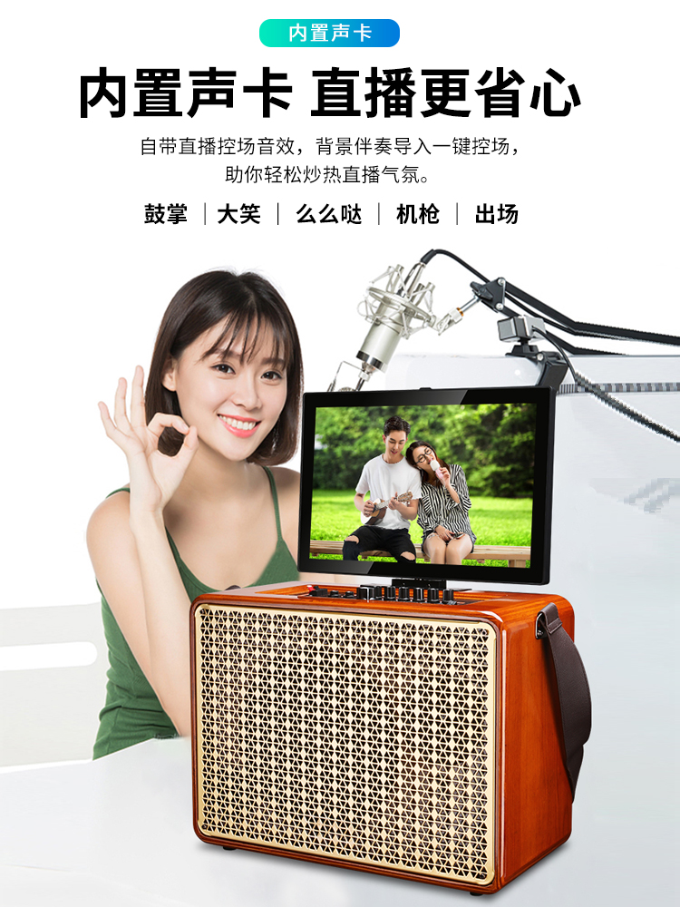 Wood color bracket intelligent wifi with screen dual system point song sound card effect] Brown color bracket intelligent wifi with screen dual system point song sound card effect] Peach wood color