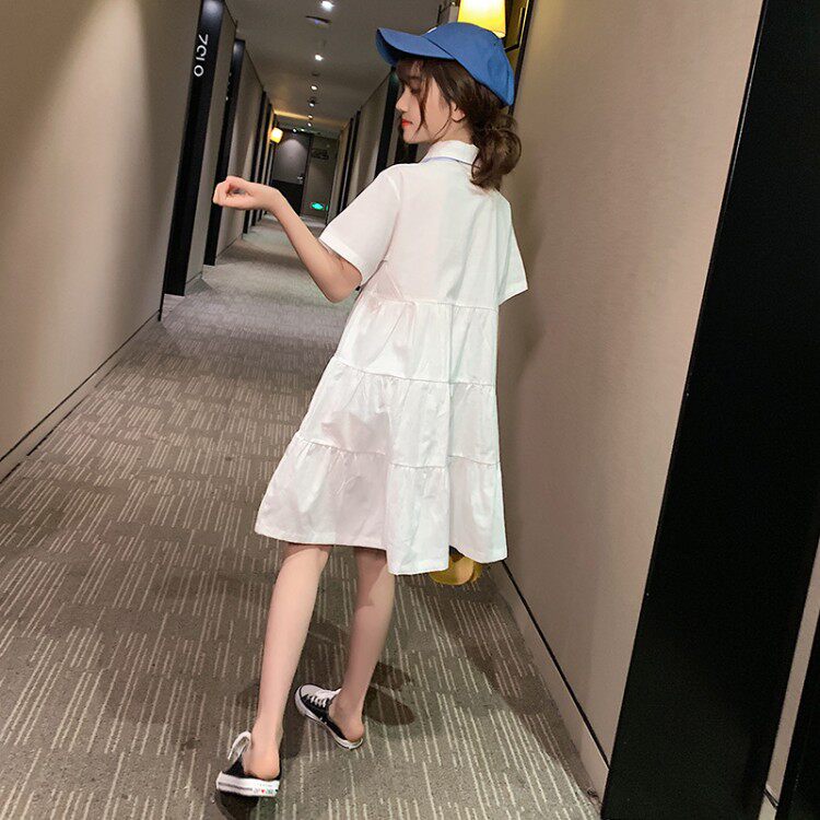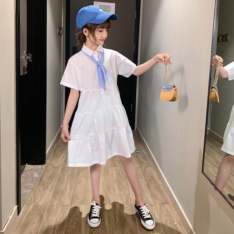 Girl Summer Dress Foreign Dress Children's Shirt Dress White Korean version of the girl's dress CUHK Scout Red Red Tides