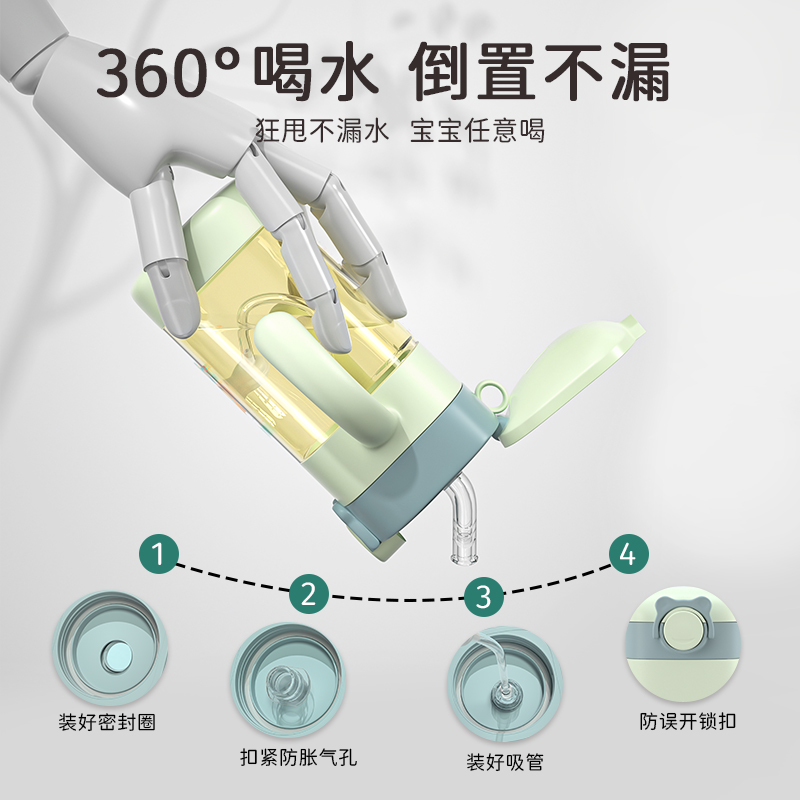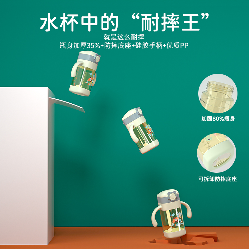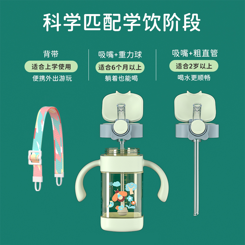 ppsu children's water cup straw type bottle baby anti-choking drinking water drinking milk big child learning cup 1 year old one 2 hands 3 handles 4