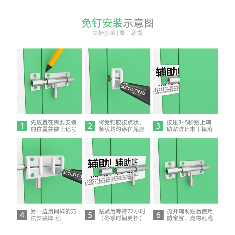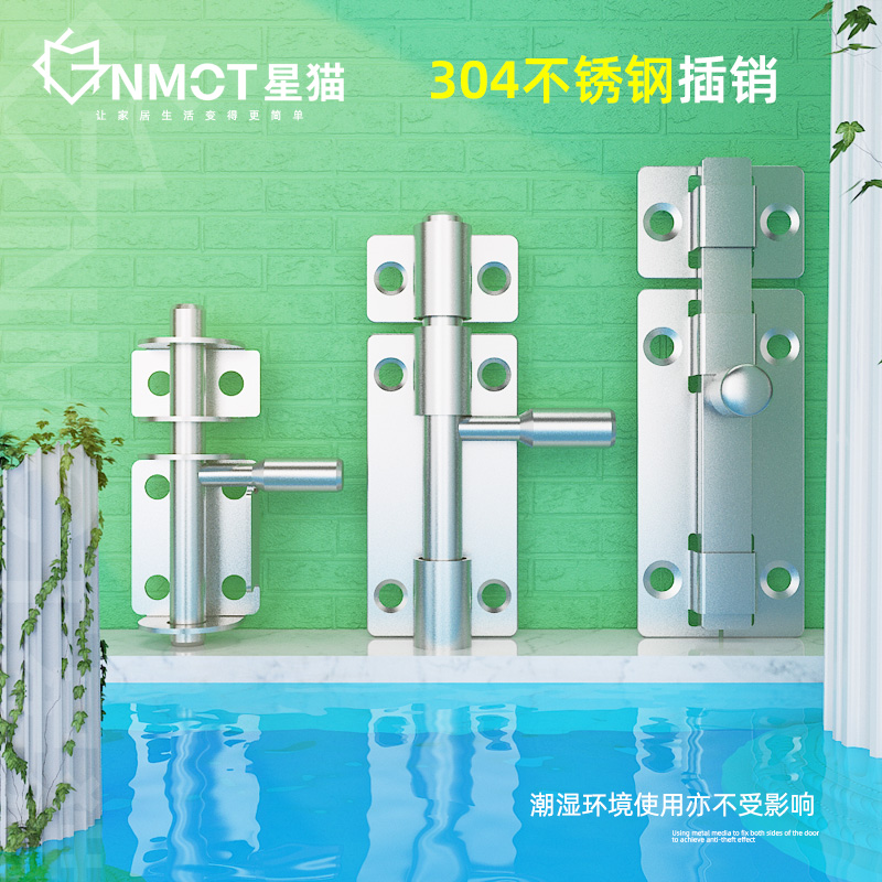 Punch-free 304 stainless steel bolt door bolt old-fashioned door buttoned wood doors and windows Anti-theft insert lock dressing room thickened Ming dress