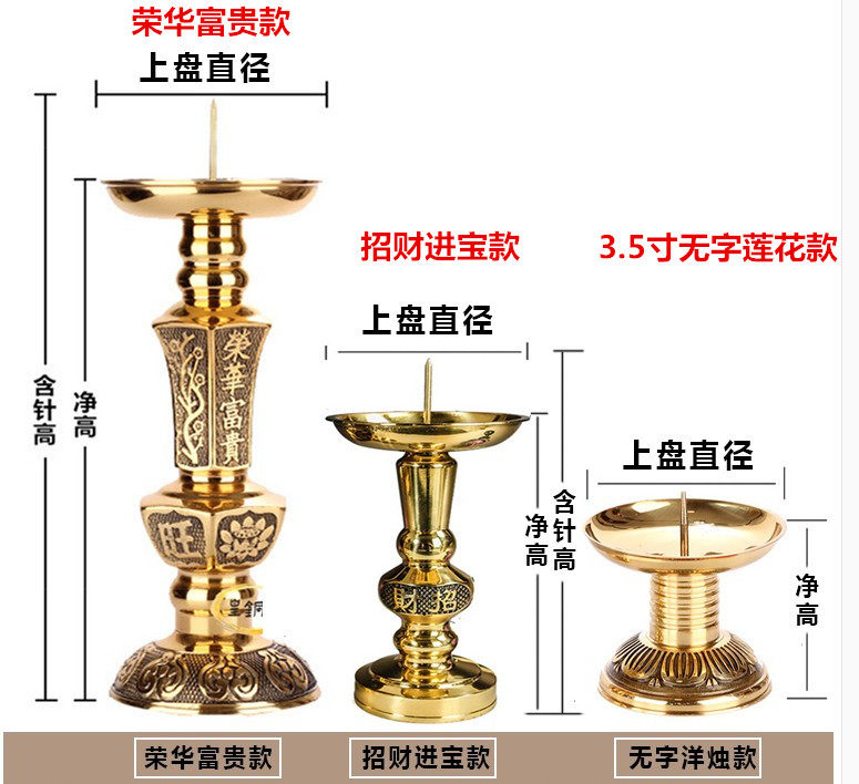 Pure copper boutique candle holder Wangcai candlestick attracts wealth and treasure Chinese candlestick for Buddha worship wedding candlestick new product