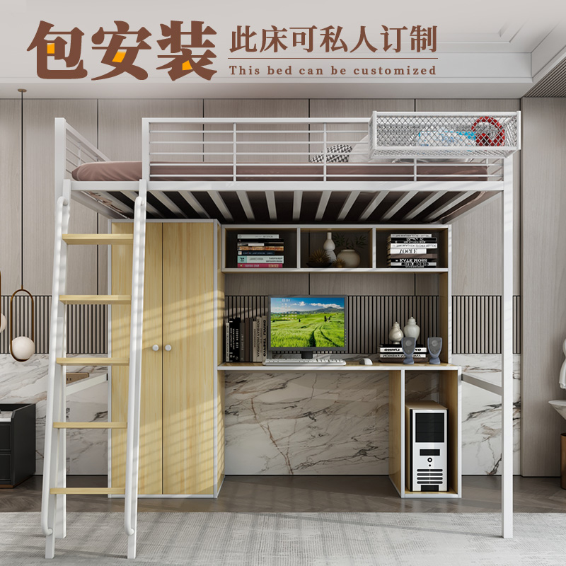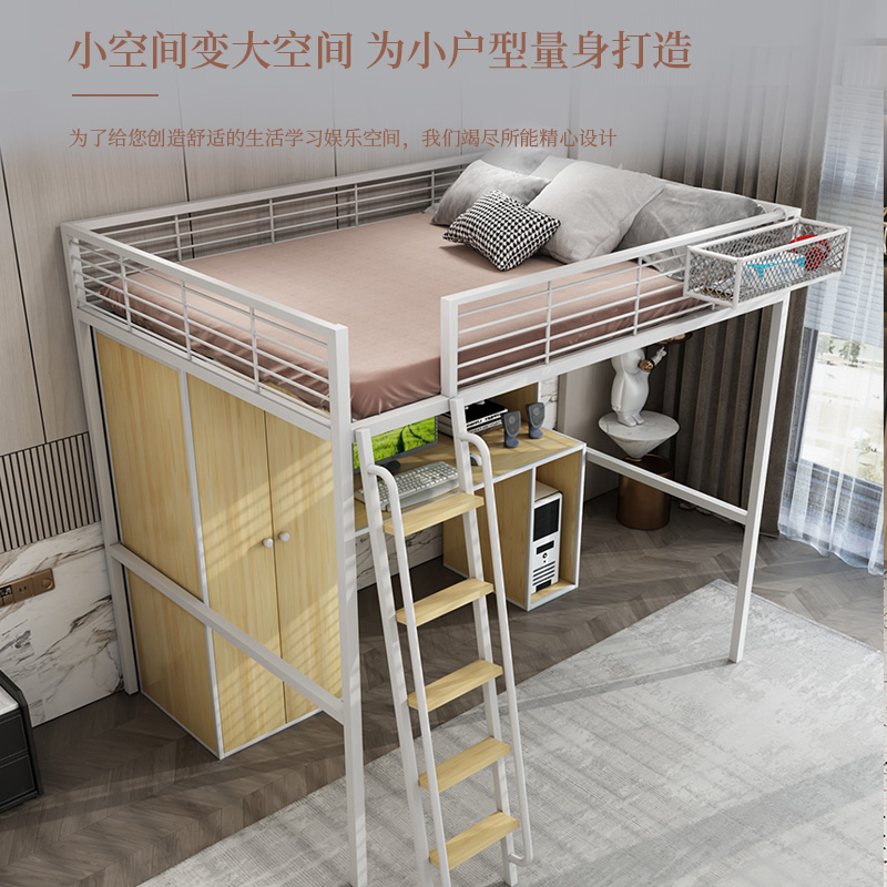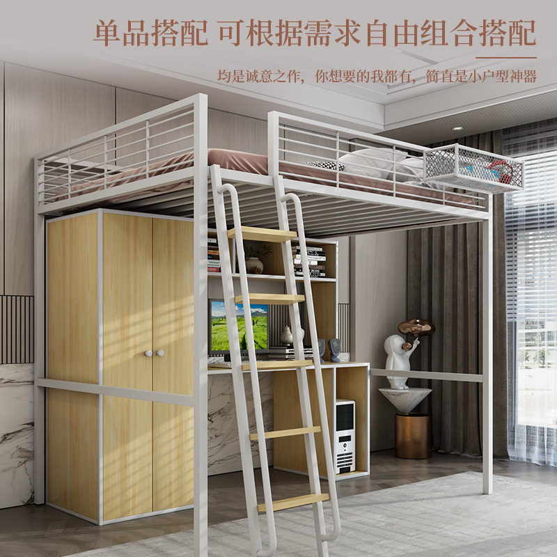 Nordic wrought iron loft bed small apartment space-saving pavilion bed under the table simple modern single upper floor high and low bed
