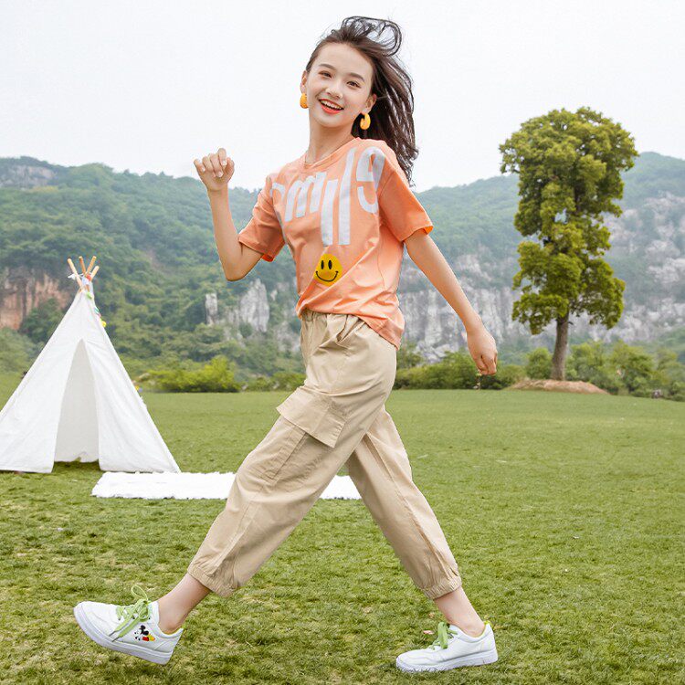 Girls Summer Dress Net Red Set 2021 New Autumn Clothes Girls Foreign School Korean Edition Casual Middle Child Fashion Trend