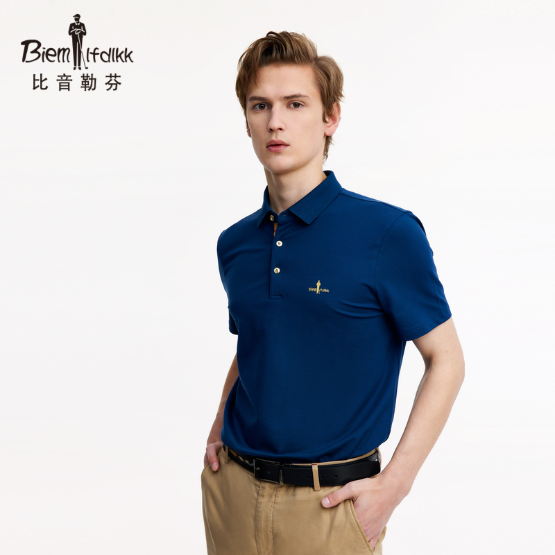 (Outlast air-conditioning silk) Biyin Lefen 2021 summer high-end short-sleeved embroidered lapel t-shirt men's polo shirt